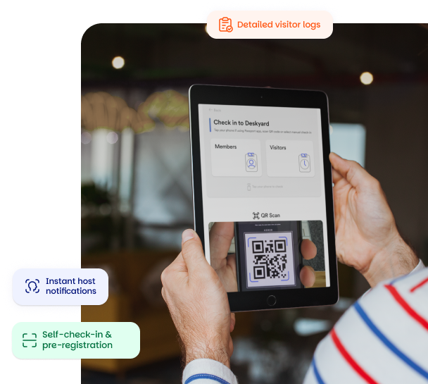 - Flexible check-in options: Visitors can check in using a tablet app, mobile or QR codes.